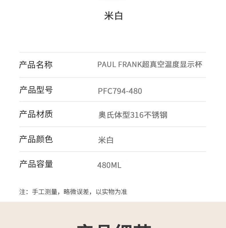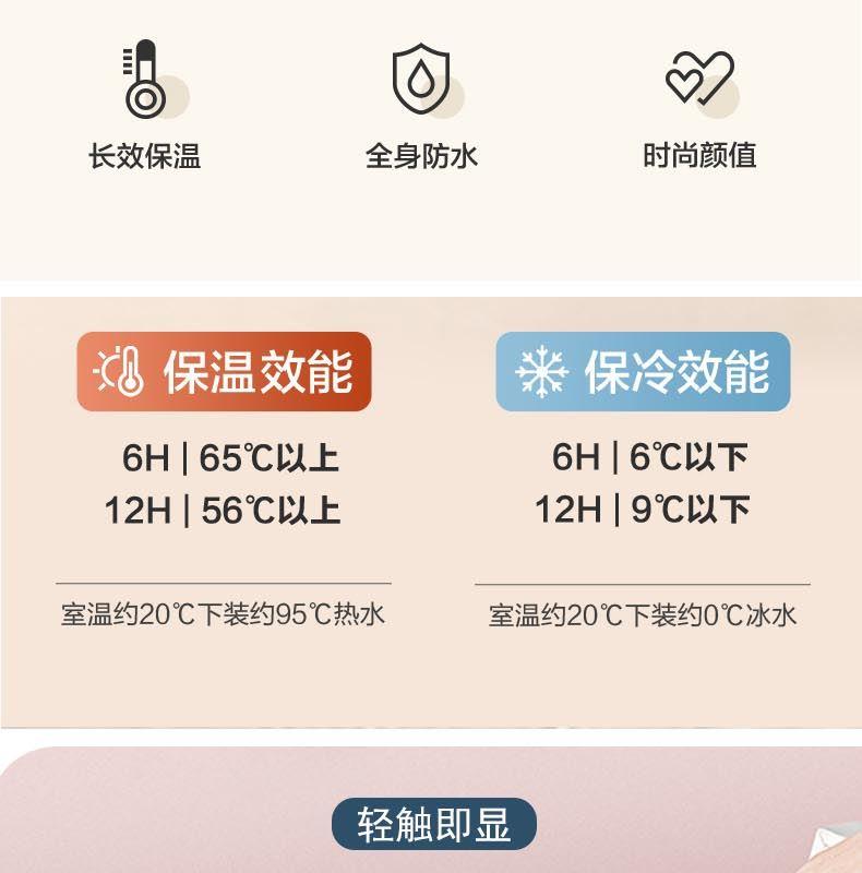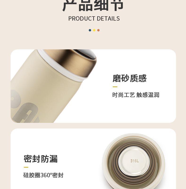 產(chǎn)品容量:480ML 產(chǎn)品材質(zhì):奧氏體型316不銹鋼 顏色可選:米白 裝箱數(shù)量:40pcs 杯口細膩圓潤,口感服帖。 杯身采用316奧氏體型不銹鋼,一體拉伸無縫內(nèi)膽,長效保溫。 杯蓋采用智能芯片,無需充電,高靈敏溫度傳感器,觸碰顯示, 倒入熱水3-4秒溫度顯示,自動息屏,水溫輕松掌握。 搭配智能顯溫杯蓋,將高顏值和實用性高度結(jié)合,裝包便攜無負擔(dān)
