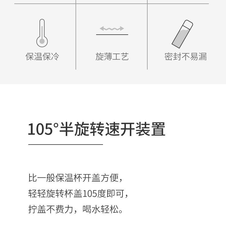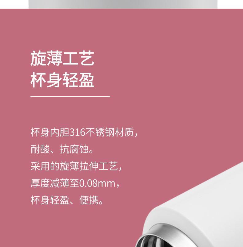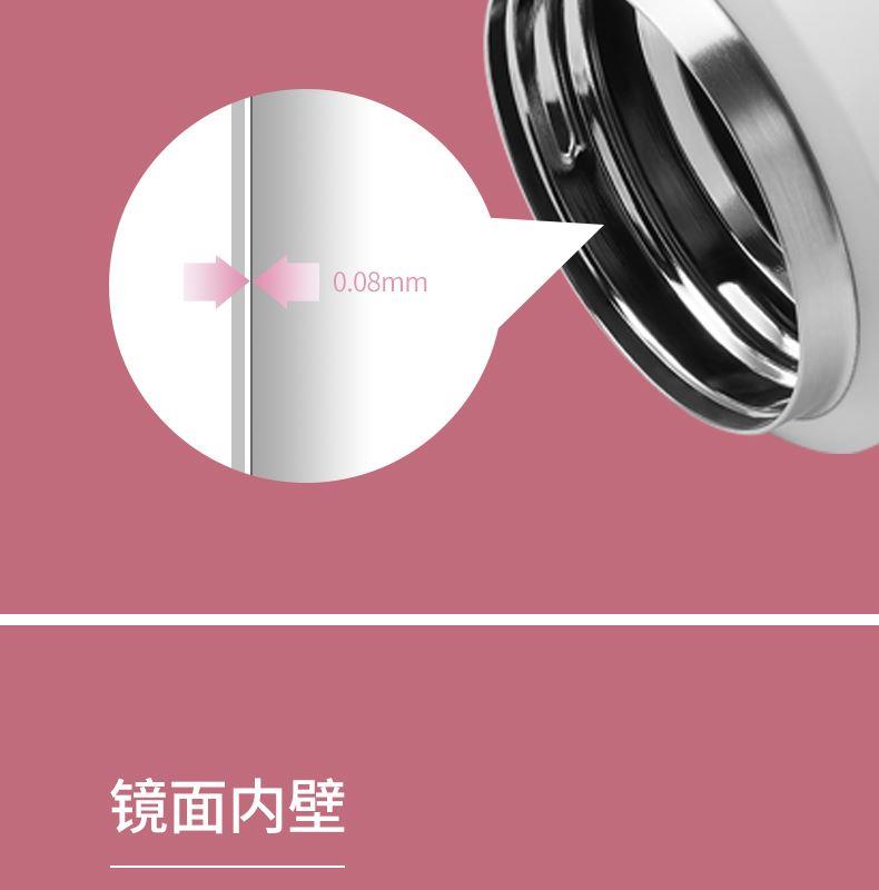 相比市面上0.2mm內(nèi)膽的保溫杯厚度,在不降低保溫性能的基礎上,引入新旋薄工藝,大大降低了保溫杯的重量和大小,相同的容量杯身體積小